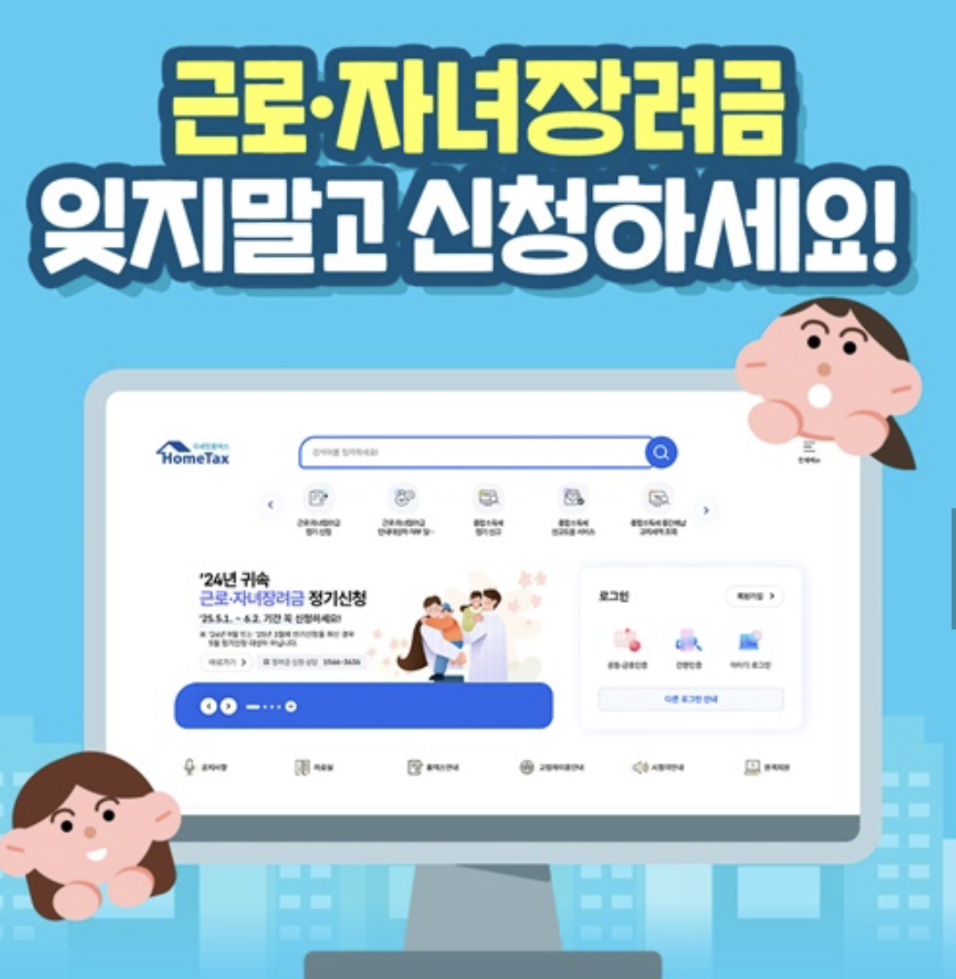 - 홈택스 접속 → 로그인 → 마이홈 → 근로장려금 → 신청·지급현황