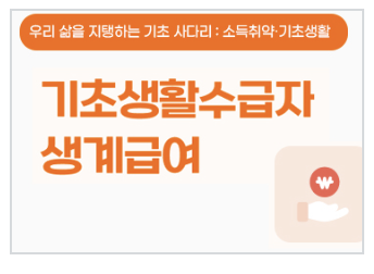 - 의료급여 : 병원 진료 및 입원비, 약제비 등에 대해 본인 부담을 최소화해주는 제도입니다. 일부 중증질환은 전액 지원됩니다.