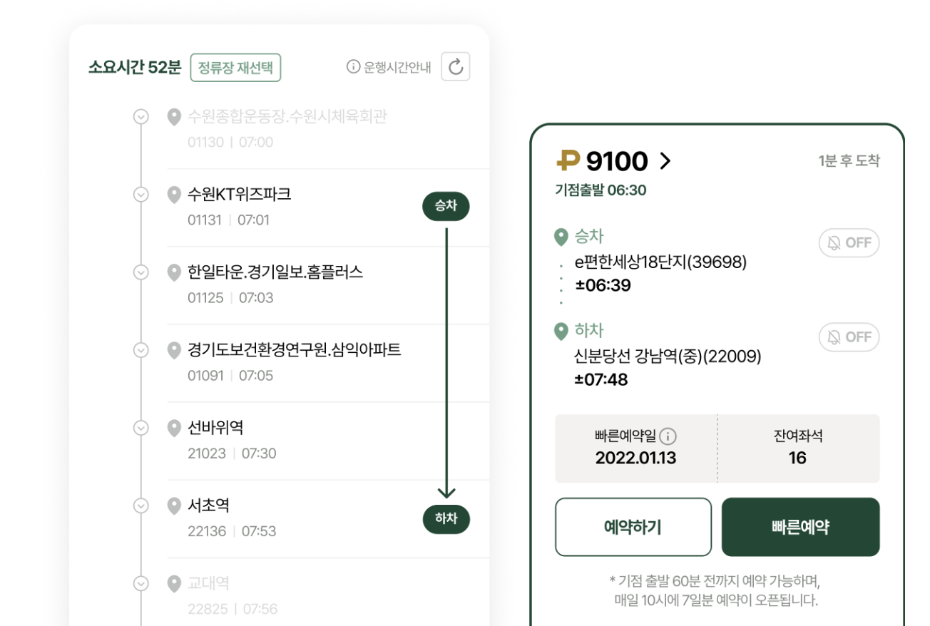 8월 11일부터 본격 시행되는 예약제로 출퇴근 스트레스를 덜고, 더 편리한 이동을 시작해 보세요.