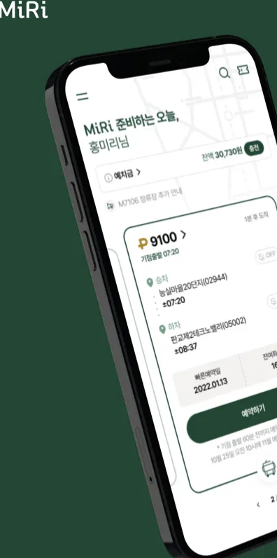 MiRi 앱을 통해 예약할 수 있기 때문에, 언제 어디서나 간편하게 예약하고 출퇴근 시간을 효율적으로 관리할 수 있습니다. 또한, 이 앱은 예약 현황을 실시간으로 확인할 수 있어, 예약에 대한 안정성과 편리성을 동시에 제공합니다. 사용자는 예약 취소나 변경도 간단하게 할 수 있어, 출퇴근 일정이 유동적일 경우에도 유용하게 사용할 수 있습니다.