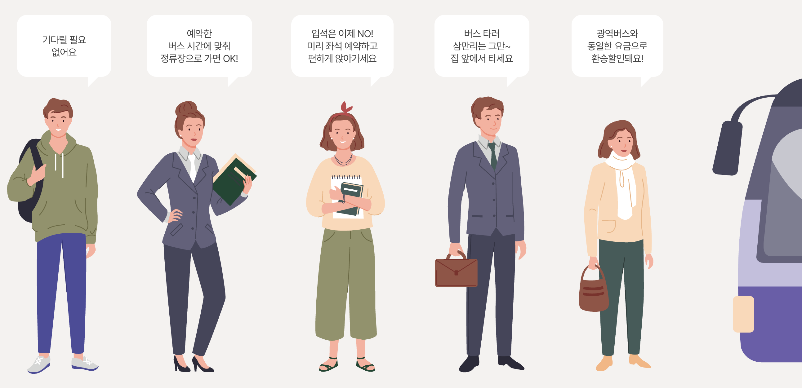 이젠 줄서서 버스 기다릴 필요 없이 집에서 미리 좌석을 예약하고 편하게 이용해 보세요.