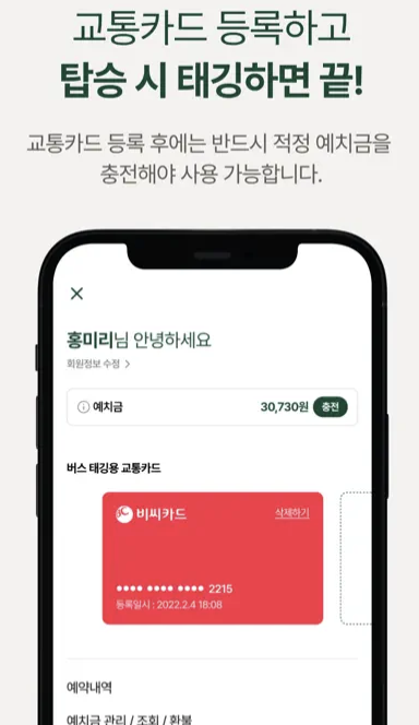 - 교통카드 등록: 자신의 교통카드를 앱에 등록합니다.